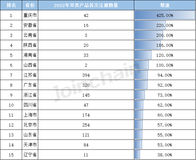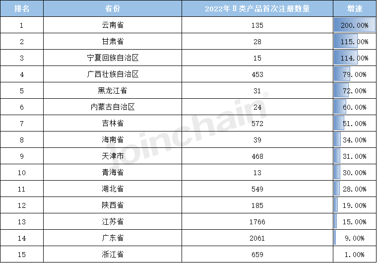 省份/自治区Ⅱ类产品首次注册数增速超百分百
