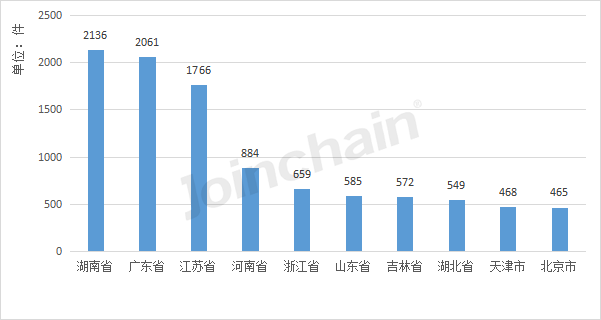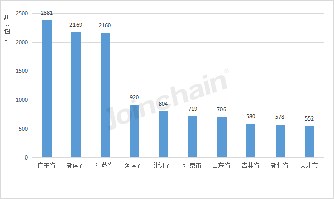 从全国各省Ⅱ类产品首次注册数量来看,湖南省以2136件居全国首位,广东省和江苏省紧随其后,分别以2061件、1766件位排名二、三。
